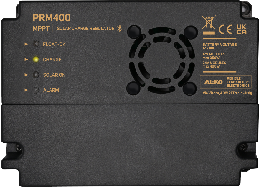 Der hochwertige Solarregler PRM400 kann die Energie von Solarmodulen mit bis zu 400 Watt Gesamtleistung verarbeiten und sowohl Lithium-Ionen- als auch Blei-Säure-Batterien (wie Gel- oder AGM-Batterien) mit 12 Volt aufladen. Dabei wird die die Energieeinspeisung automatisch gesteuert und begrenzt. Dank MPPT-Technologie sorgt der PRM400 dafür, dass immer die jeweils mögliche maximale Leistung aus den Solarmodulen herausgeholt wird, was das Laden der Batterien besonders effizient macht.