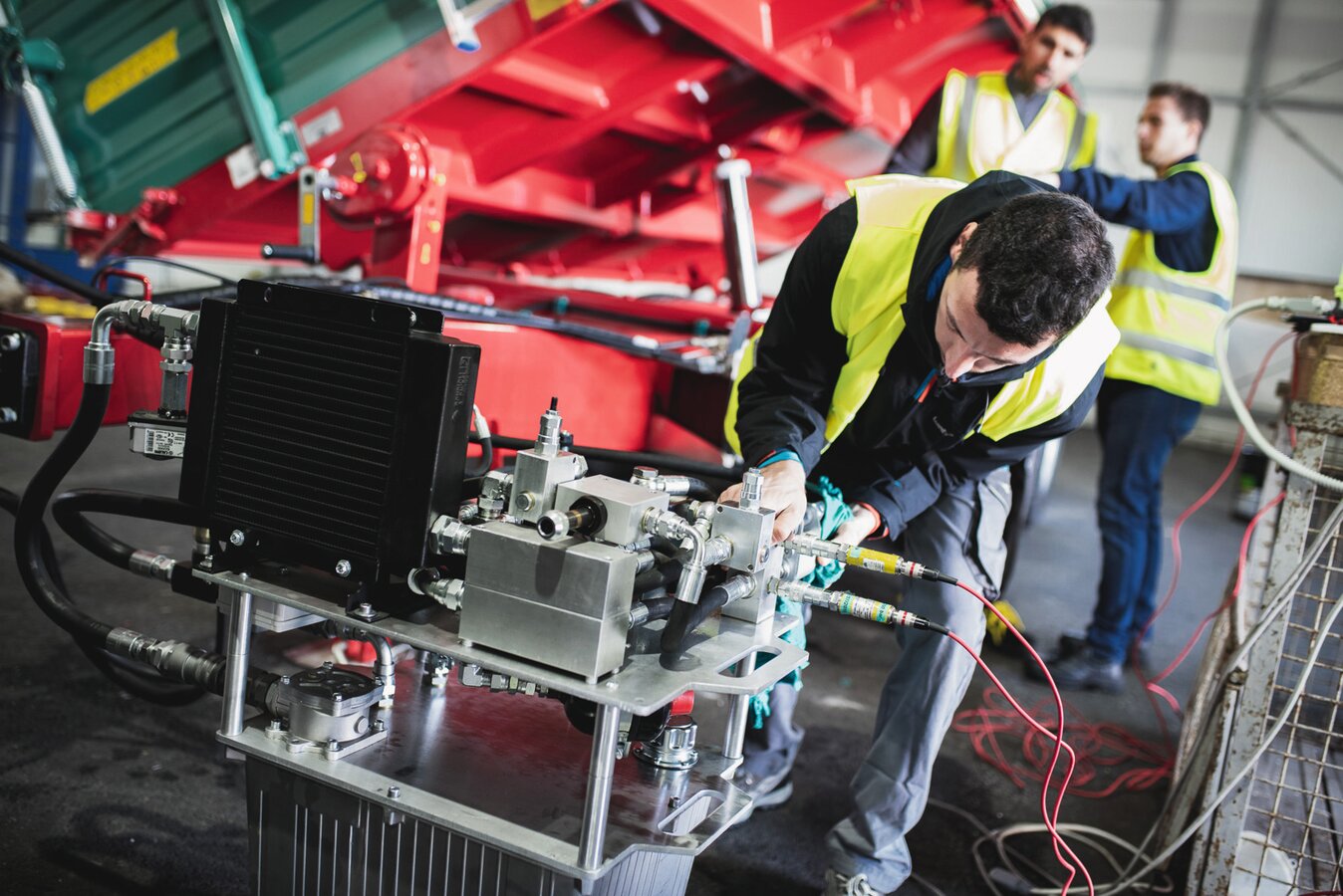 Ausgestattet mit einem ganzen Baukasten von Ventilen unterschiedlicher Leistungsklassen realisieren die Ingenieure von Fluid-Press Fahrzeugbewegungen nach Maß. Auch neue Funktionen sind mit dem Set an Komponenten souverän zu konzipieren. „Die enge Zusammenarbeit mit dem Kunden ist dabei zentral“, sagt Montanari. „Schließlich muss die finale Lösung effizient und kompromisslos zuverlässig sein.“ Das gilt umso mehr für Bremslösungen von Safim. Entwicklung und Zulassung von neuen hydraulischen Bremssteuerungen erfordern viele Abstimmungsrunden mit den jeweiligen Kunden, oft durch wöchentliche Treffen der jeweiligen Fachleute.