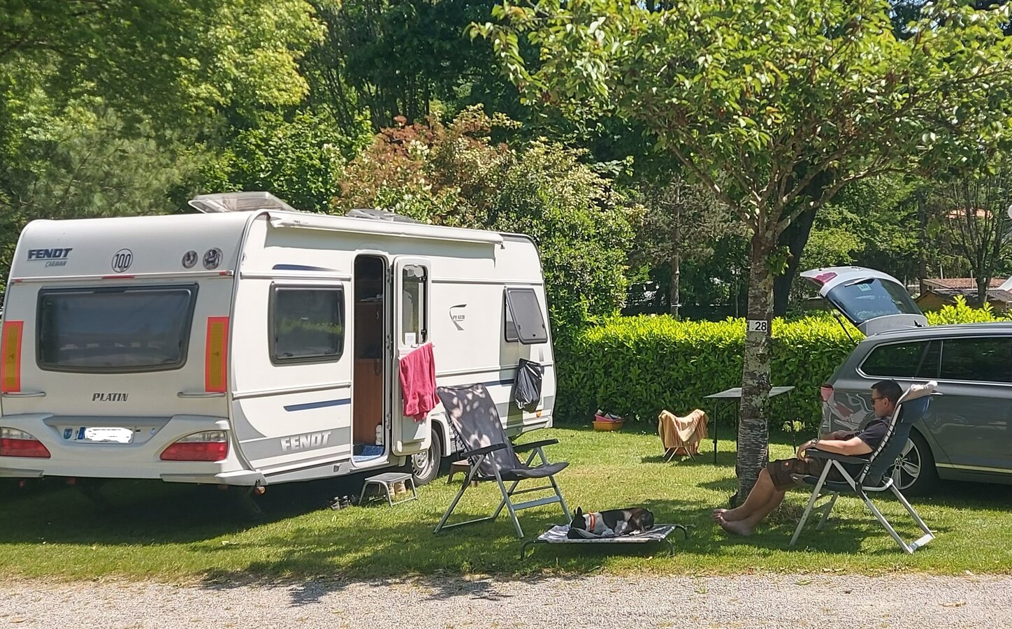Am Ziel angekommen ist die passende Platzwahl entscheidend für einen entspannten und erholsamen Urlaub für Mensch und Tier. Idealerweise wählen Sie eine Parzelle, auf der Ihr Hund selbst entscheiden kann, ob er sich ein kühles Schattenplätzchen sucht oder sich die Sonne aufs Fell scheinen lässt. Liegt der Platz am Rand mit mehr Ruhe und weniger Durchgangsverkehr, ist das ein zusätzliches Plus.