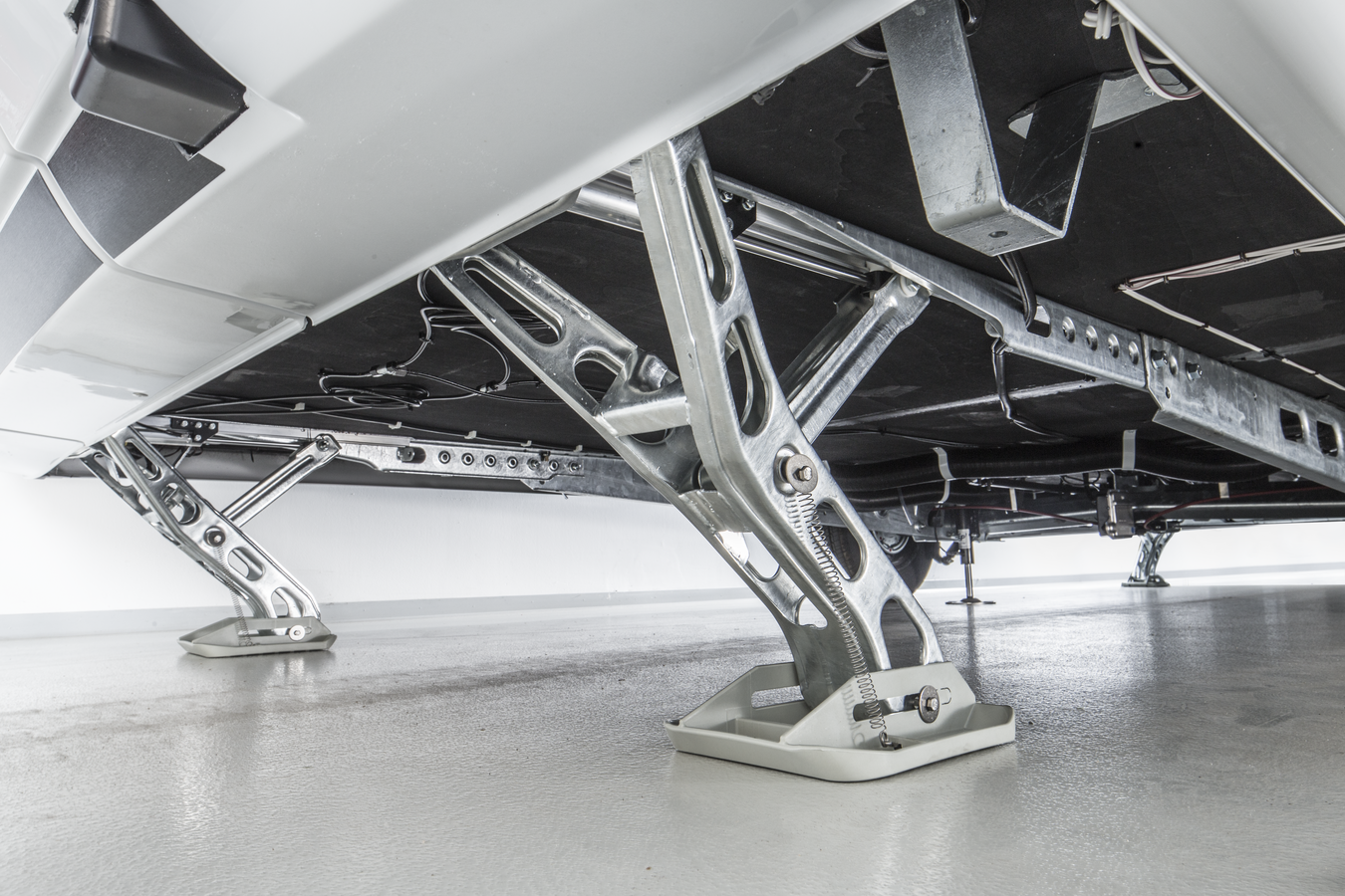 Böse Langfinger haben beim UP4 Stützensystem übrigens keine Chance. Eine eingebaute Diebstahlsicherung bewirkt, dass die Stützen nur mittels eines Spezialschlüssels manuell bewegt werden können. Ein unbefugter Zugriff ist somit ausgeschlossen.