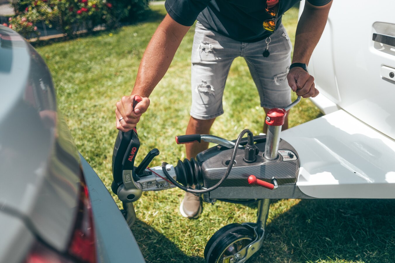 Not an additional feature, but an important part of the basic equipment, is the overrun brake for caravans. This must be able to move freely; you will find the lever for this on the drawbar.